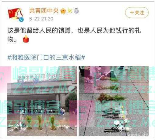 据潇湘晨报报道,在花束中间,还有市民送来三“束”水稻苗,水稻挺立在医院门口,寄托着一种别样的哀思。
