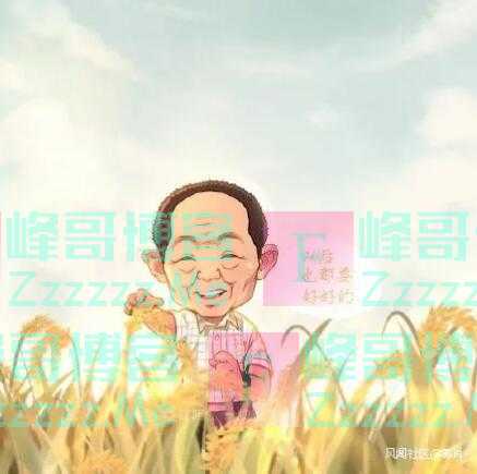 青年手里的麦穗远远没有91岁的袁隆平背后的稻穗饱满,甚至还有点短小,但他右手夹着书本,背部挺直,坚定地望向远方,远处的山上,太阳刚刚升起,照得青年手里的麦穗也金灿灿的,看着青年,91岁的袁隆平露出了欣慰的神情。