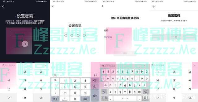 家长在开启青少年模式时,四家平台均需要输入密码。其中,抖音、快手、B站需要设置四位数字的二级密码,视频号需要通过验证微信登录密码开启青少年模式。其中B站和快手的密码为一次性的,每次开启都可更换,而抖音则是固定密码,可以在设置界面更改。