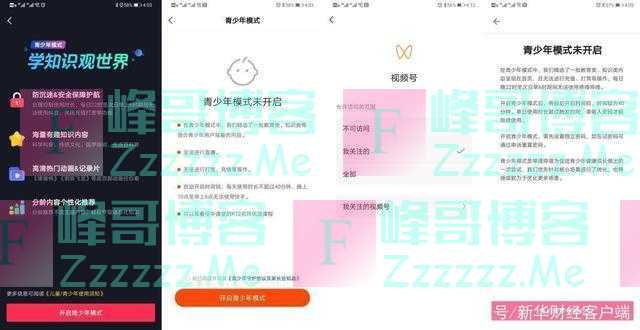记者在实际操作中时发现,抖音、快手、B站三个平台在每天首次启动时均会主动弹窗提醒“开启青少年模式”,视频号则缺少独立的青少年模式,家长必须在微信青少年模式中统一对微信公众号、视频号、小程序、看一看、游戏等功能进行管理,设置入口隐蔽。经实测,如要开启视频号的青少年模式,用户需到“微信-我-设置-青少年模式”下选择“视频号”,再勾选访问权限。