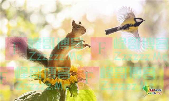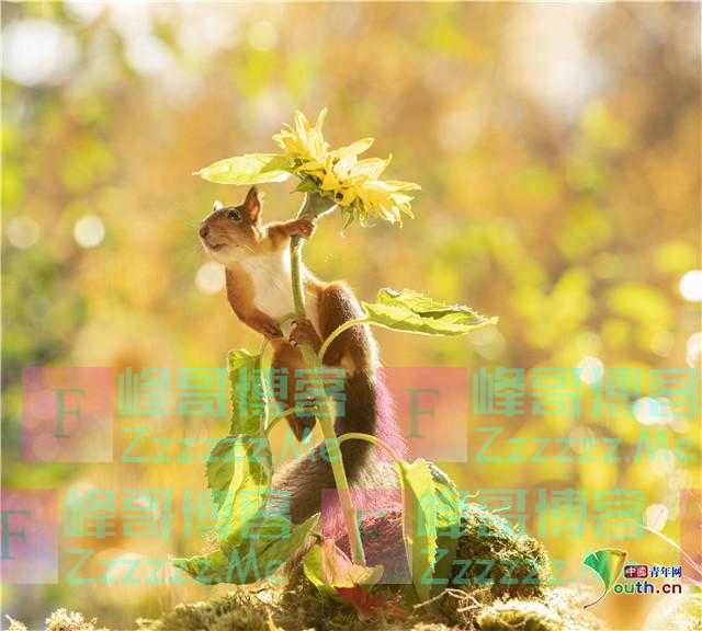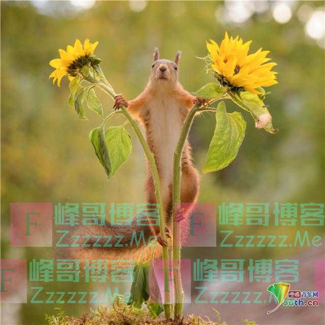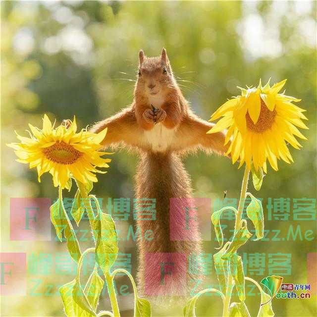 2021年5月28日报道,瑞典,这一系列由摄影师Geert Weggen拍摄的精彩画面,展示了红松鼠令人印象深刻的体操技艺。其中一张照片里,这只可爱的红松鼠在两朵向日葵之间张开双腿“劈叉”却仍然保持平衡,另外一张照片里,它抓住了向日葵的花茎准备“闻香识花”。
