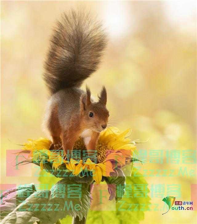 瑞典红松鼠花朵上淡定劈叉秀平衡技巧》发布于2021-5-29