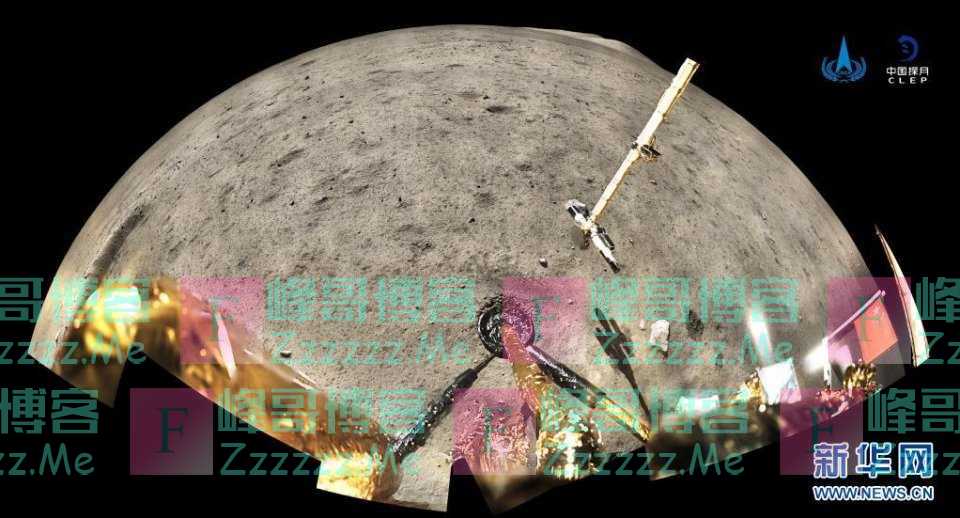 2020年12月4日,国家航天局公布了探月工程嫦娥五号探测器在月球表面国旗展示的照片。嫦娥五号着陆器和上升器组合体全景相机环拍成像,五星红旗在月面成功展开,此外图像上方可见已完成表取采样的机械臂及采样器。新华社发(国家航天局供图)