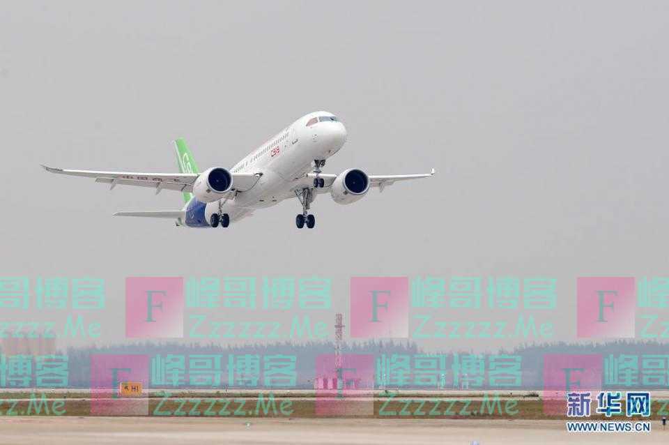 2017年5月5日,国产大型客机C919在上海浦东国际机场首飞成功。新华社记者 丁汀 摄