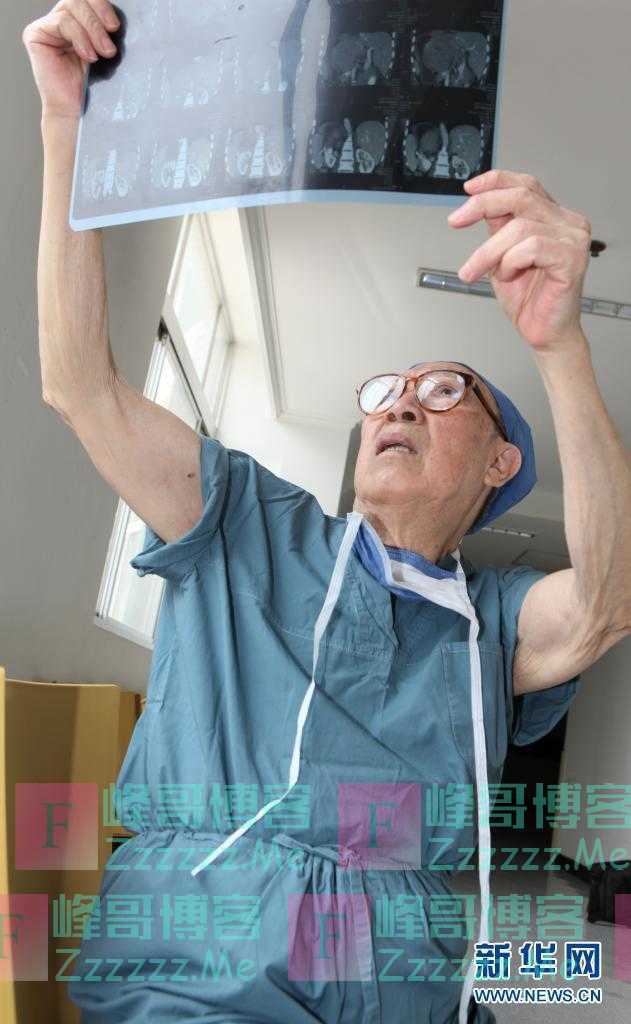 年近90的吴孟超院士在手术后分析患者的核磁共振结果(2011年4月13日摄)。新华社发(张鹏 摄)