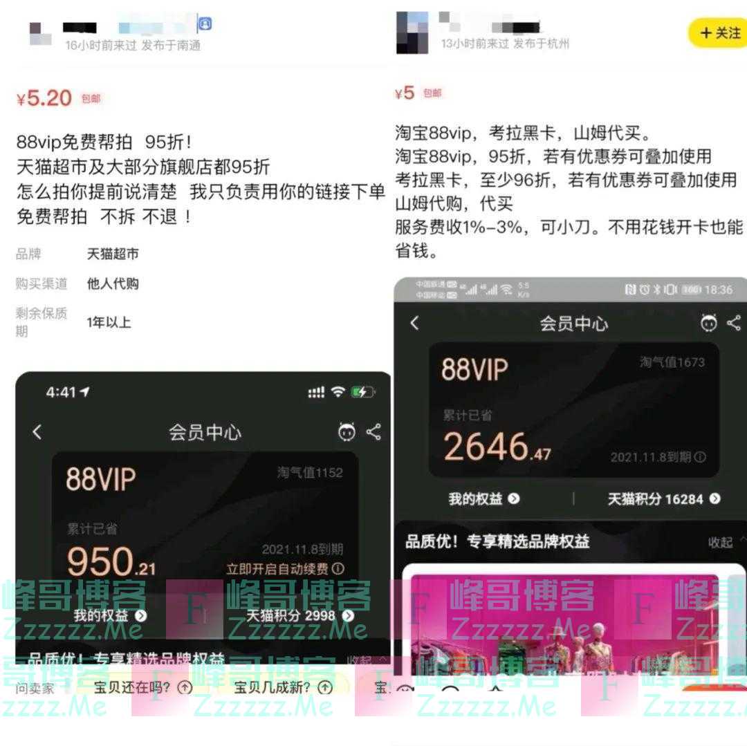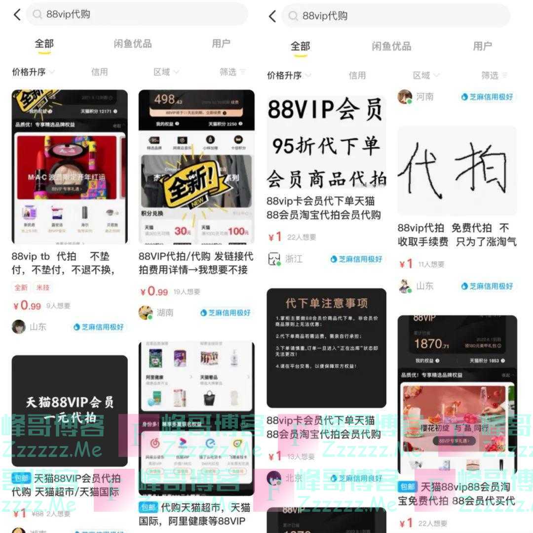 据闲鱼数据显示,一天之内88VIP代下单相关的链接就激增了130%。除此之外,苏宁、考拉、亚马逊、盒马等会员代拍服务也颇受网友关注。