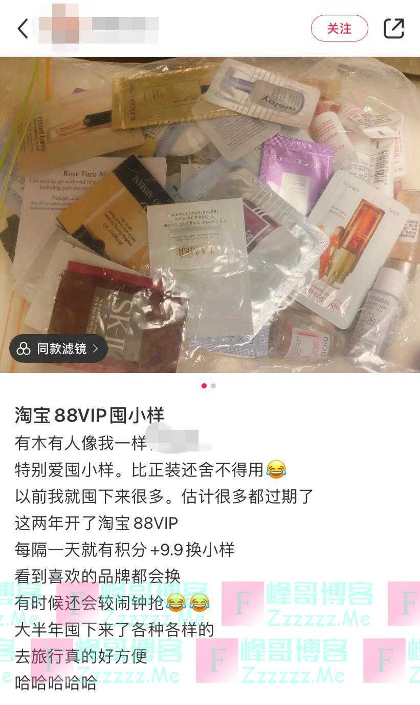 网友晒出大半年囤下的各种大牌小样。“出差的旅行装都备齐了。”