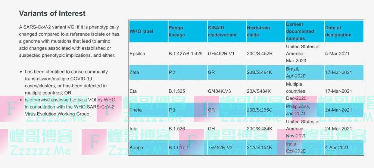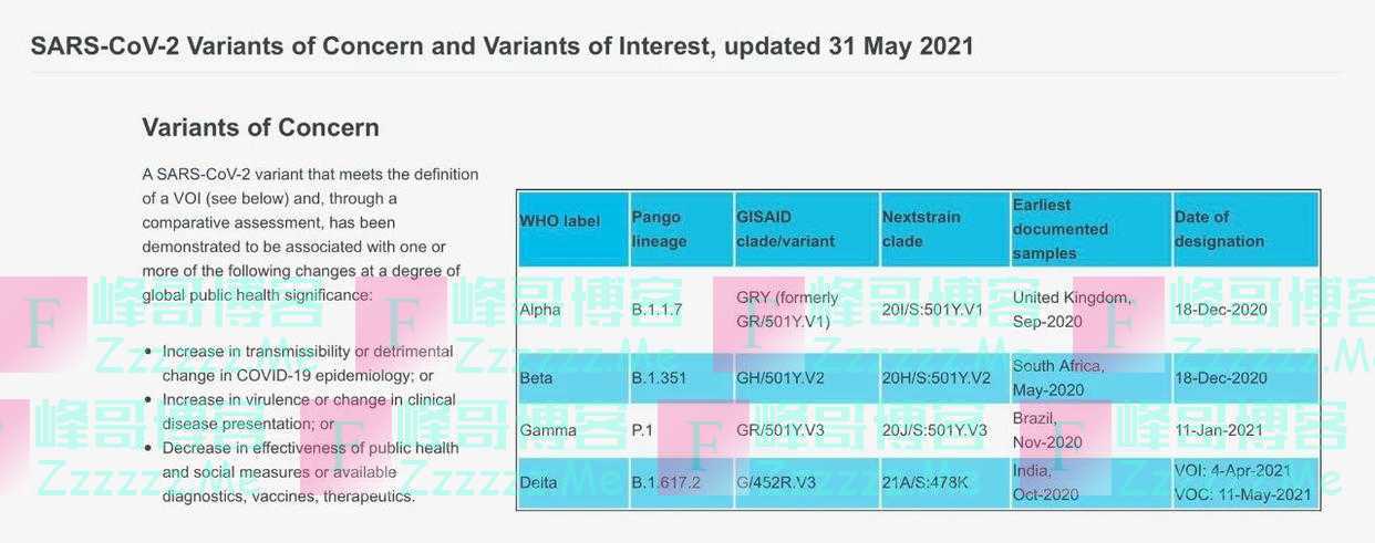 据世卫组织官网消息,截至5月31日,世卫组织共列出4种“须关切变种”(Variants of Concern),6种“待观察变种”(Variants of Interest)。