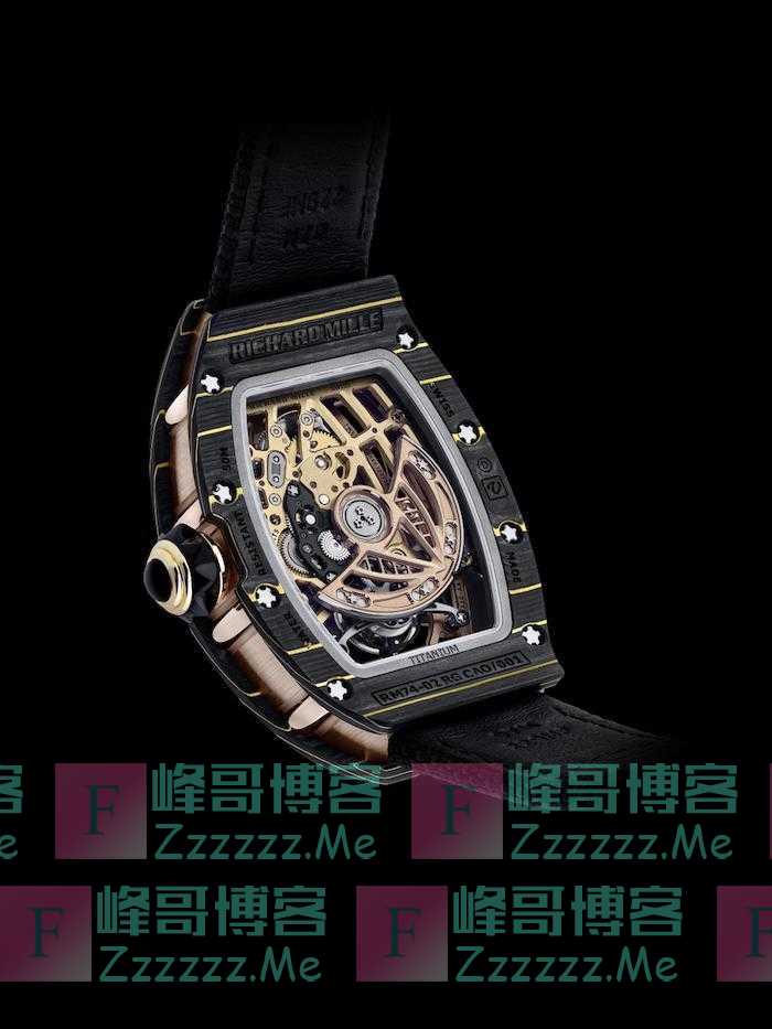 RICHARD MILLE RM 74-02腕表RM 74-02的核心是其所搭载了品牌自主研发的CRMT5机芯,采用黄金和红金制作底版和桥板。随着无卡度游丝摆轮牵动陀飞轮调速器的节奏,快速上链发条盒源源不绝地通过渐开线形齿轮稳定地传输动力,以确保长达50小时的“机械芭蕾演出”。机芯从可变几何结构摆陀中汲取能量,使得每枚腕表及其上链效率都能根据佩戴者的生活形态进行个性化调整。魔力金:融合陶瓷与黄金的魅力