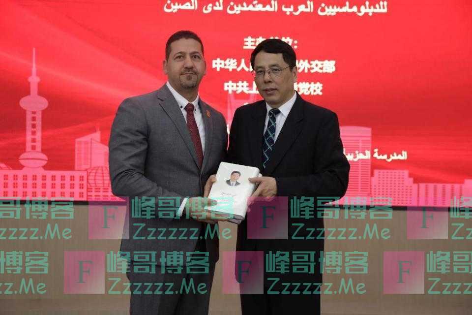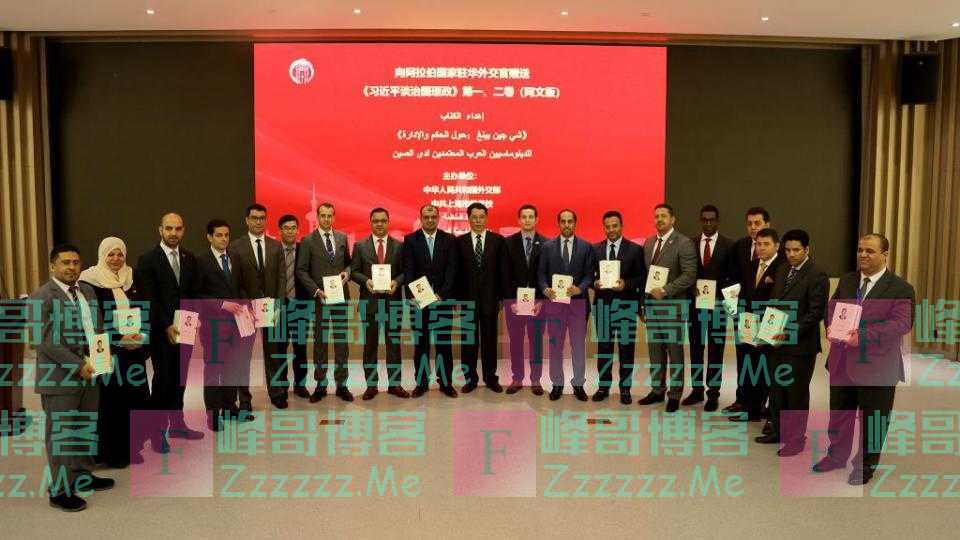 阿拉伯国家驻华外交官研修班学员在上海市委党校获赠阿文版《习近平谈治国理政》第一、二卷。