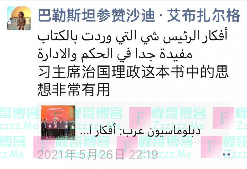 巴勒斯坦驻华大使馆参赞艾布扎尔格的朋友圈截图。