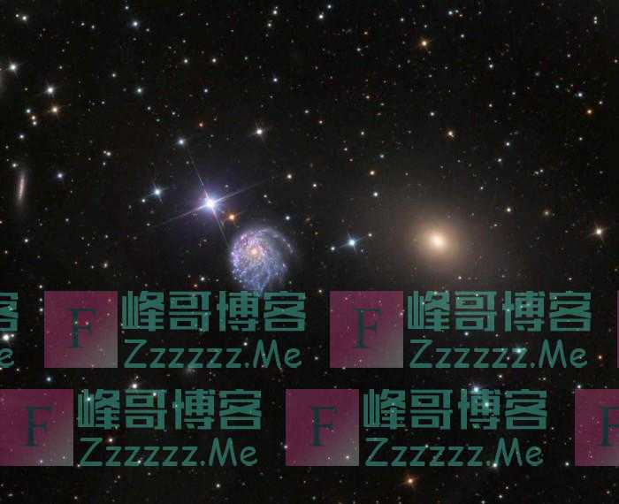 NGC 2276绝不是唯一一个具有奇怪外观的星系。1966年出版的一份不寻常的星系目录《特殊星系图集》包含了许多稀奇古怪的星系,包括壮观的星系合并、环形星系和其他奇怪的星系。与一个异常扭曲的星系相称的是,NGC 2276有幸两次被列入《特殊星系图集》--一次是由于它那倾斜的旋臂,一次是由于它与较小的“邻居”NGC 2300的相互作用。