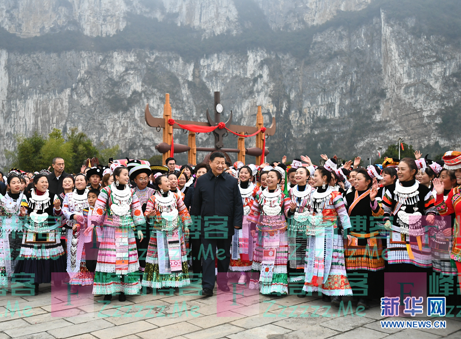 2月3日至5日,中共中央总书记、国家主席、中央军委主席习近平来到贵州考察调研,看望慰问各族干部群众,向全国各族人民致以美好的新春祝福。这是3日下午,习近平在毕节市黔西县新仁苗族乡化屋村考察结束时,乡亲们依依不舍簇拥着总书记,齐唱苗家留客歌。新华社记者 谢环驰 摄
