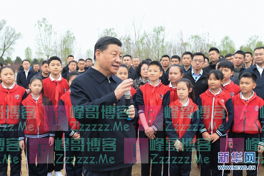 4月2日,党和国家领导人习近平、李克强、栗战书、汪洋、王沪宁、赵乐际、韩正、王岐山等来到北京市朝阳区温榆河参加首都义务植树活动。这是植树期间,习近平同在场的干部群众、少先队员亲切交谈。新华社记者 李学仁 摄