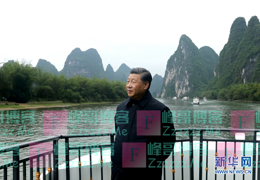 4月25日至27日,中共中央总书记、国家主席、中央军委主席习近平在广西考察。这是25日下午,习近平在桂林市阳朔县,乘船考察漓江阳朔段。新华社记者 鞠鹏 摄