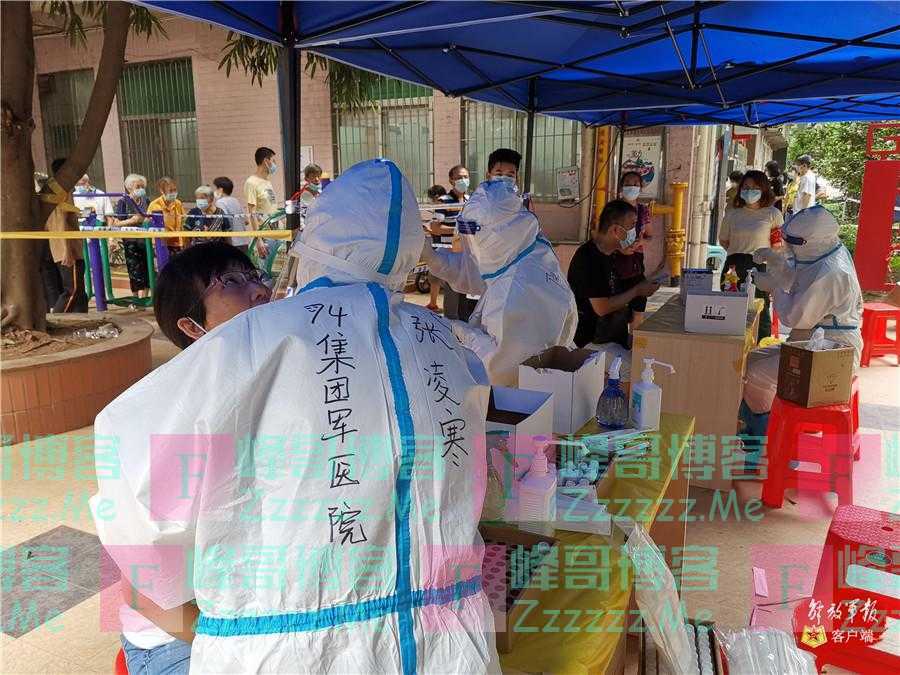 “解放军同志,你们饭都顾不上吃,汗流浃背地给我们检测,谢谢你们了!”6月2日13时许,在广州某医院刚刚结束核酸采样的市民王思倩,向前来支援采样任务的陆军第74集团军医院的官兵们表示感谢。面对疫情再次反扑,陆军第74集团军医院闻令而动,迅即抽组医疗力量紧急驰援抗疫一线,有效促进了大规模采样的顺利完成。