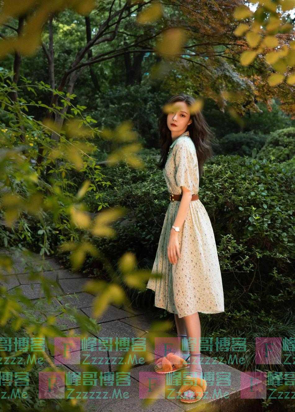 沈梦辰连衣裙配毛拖 混搭风格更别致!