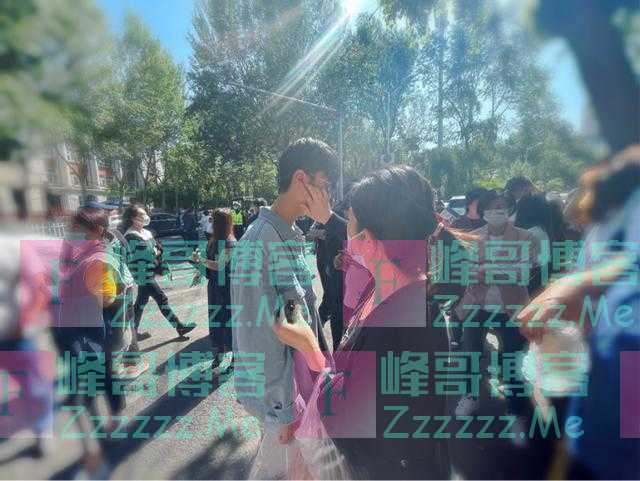 考生站在校门前,家长为孩子留下人生中重要的一张合影