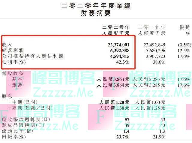 恒安国际2020年年报截图