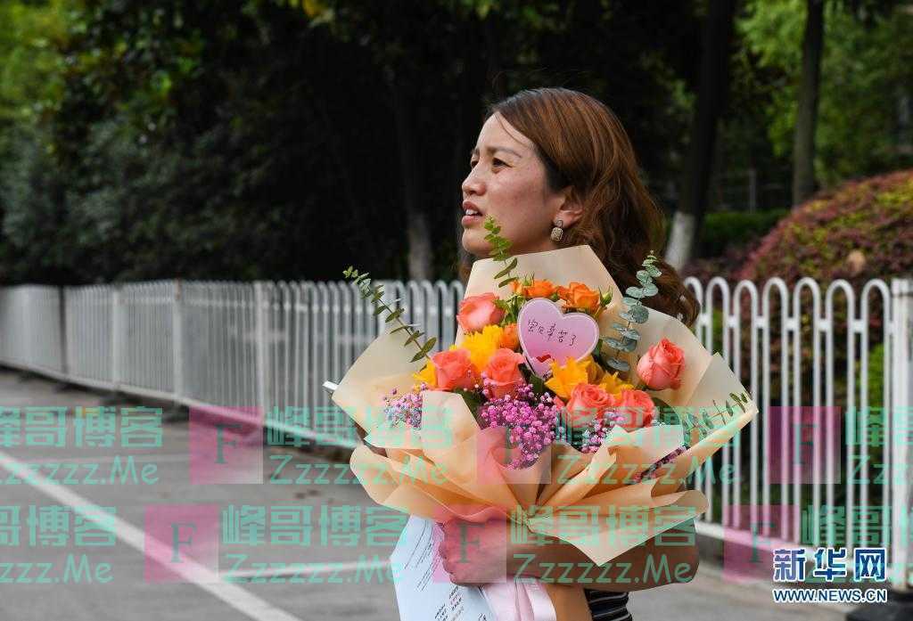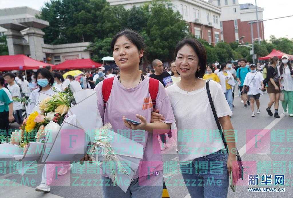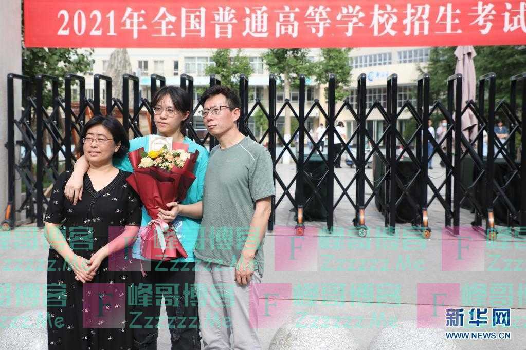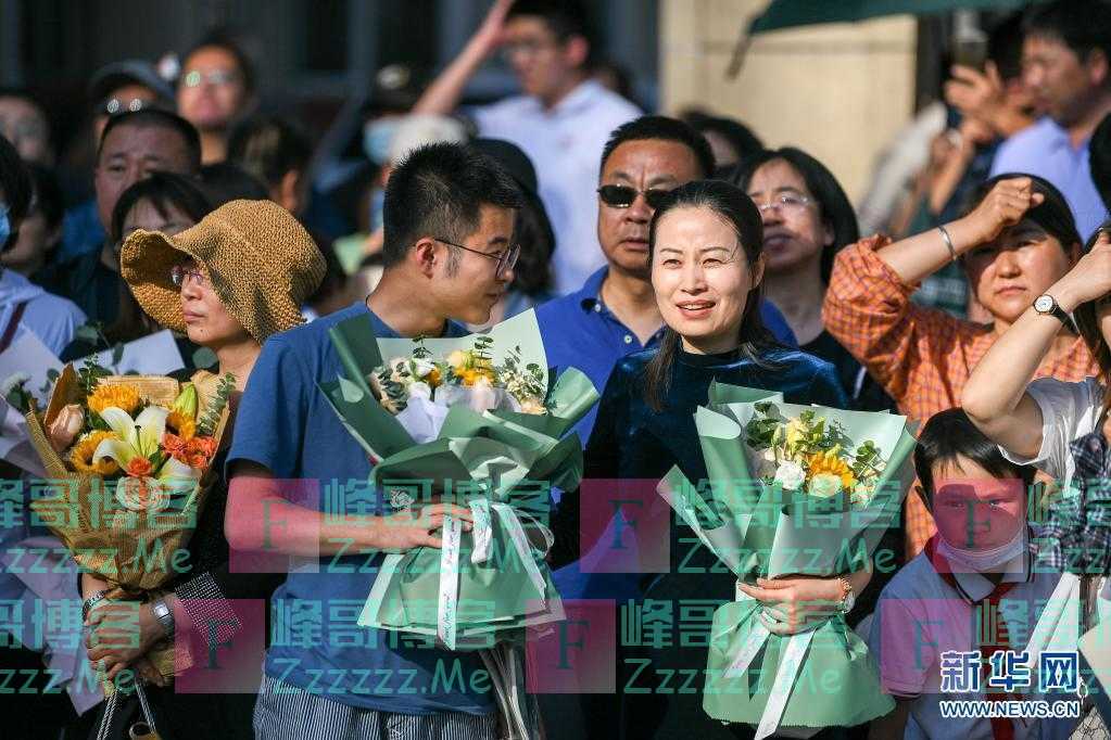 6月8日,在安徽省合肥市第八中学考点,家长向考生送花。当日,全国部分地区2021年高考结束。新华社记者 韩旭 摄