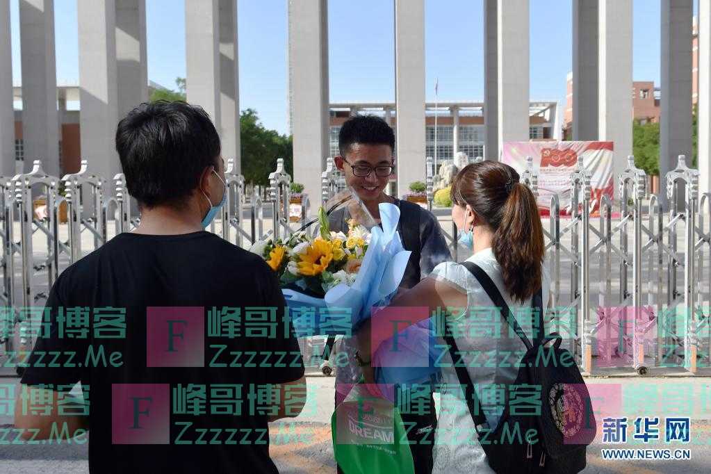 6月8日,在宁夏银川市第二中学考点,家人为考生送上鲜花。当日,全国部分地区2021年高考结束。新华社记者 唐如峰 摄