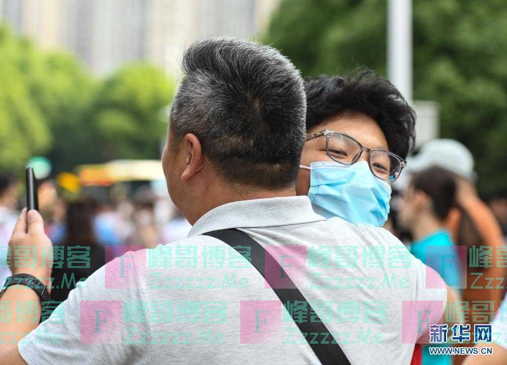 6月8日,在河南省郑州市为民高中考点外,考生和家长拥抱。当日,全国部分地区2021年高考结束。新华社记者 朱祥 摄