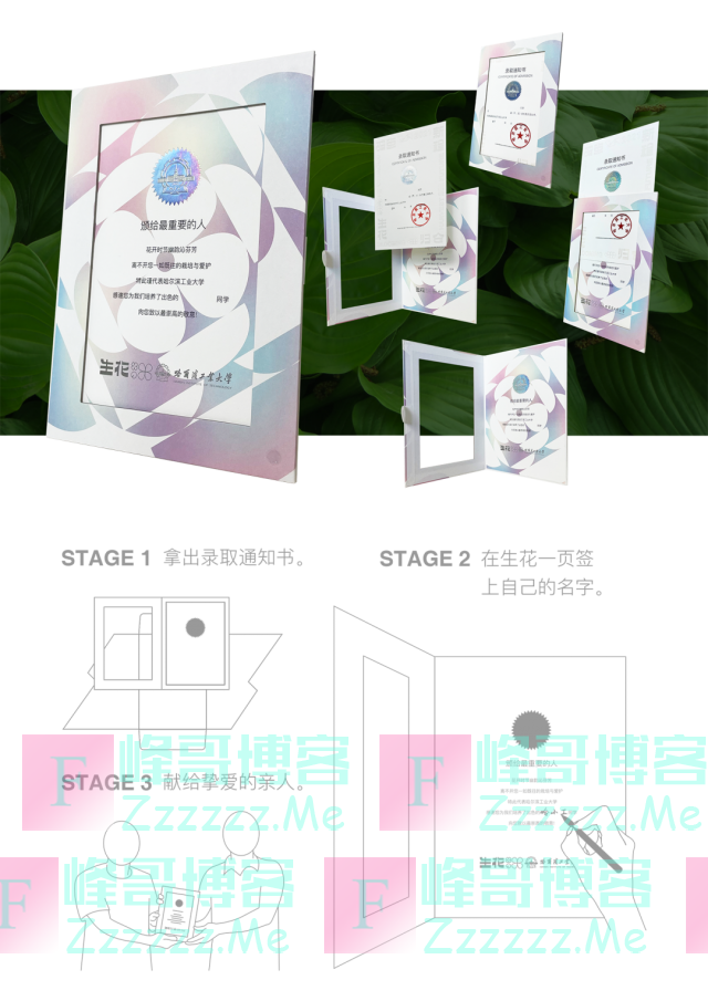 是一封内嵌感谢信的相框,由学生在相框的空白处签下自己的名字,再献给挚爱的亲人。当相框的感谢信被录取通知书覆盖后,就好似亲人的鼎力支持成为了每一位学子的坚强后盾。