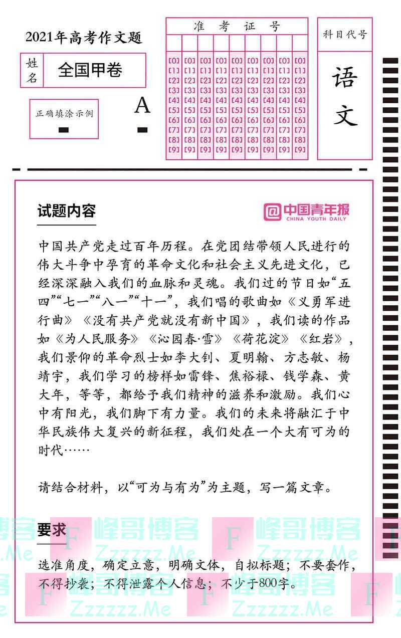 一年一度,家乡的作文题又来了!从青年追求理想到“论生逢其时”,如果你来作答,有信心考多少分?