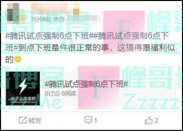 消息出来后,#腾讯试点强制6点下班#今日冲上新浪微博热搜第一,引发网友热议。
