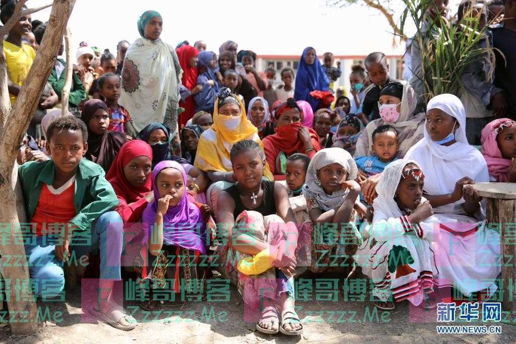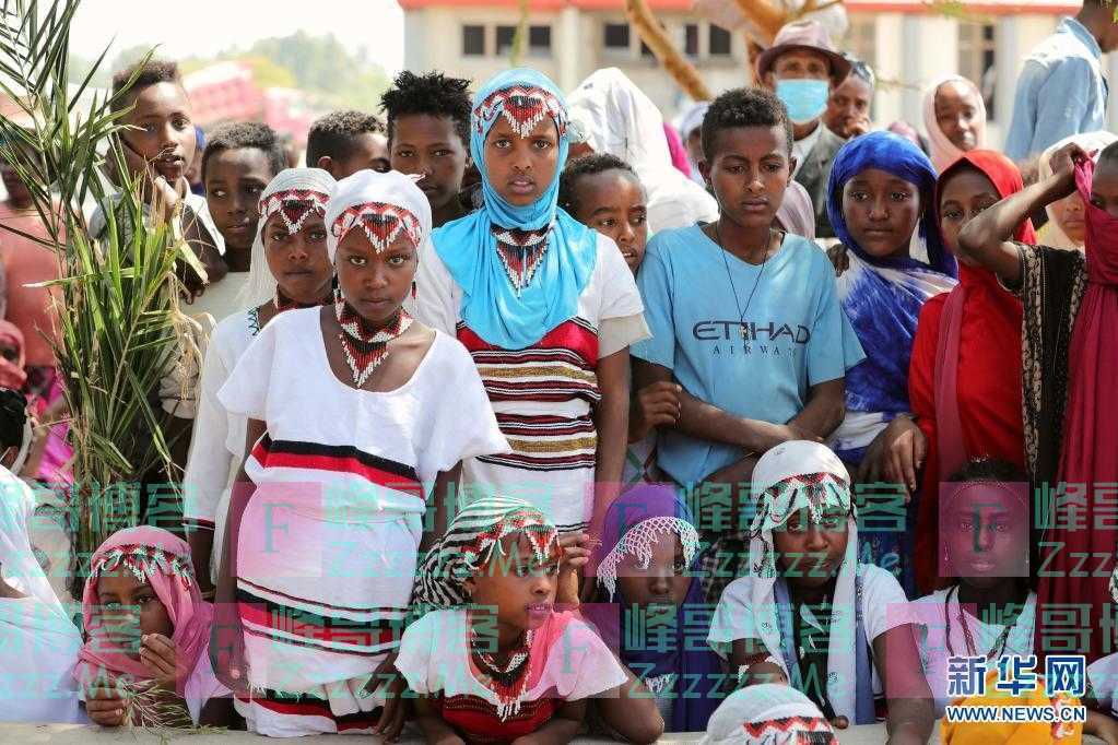 6月9日,欧巴伊小学学生和家长在埃塞俄比亚中南部奥罗米亚州的杜凯姆市参加“粮食包”发放仪式。