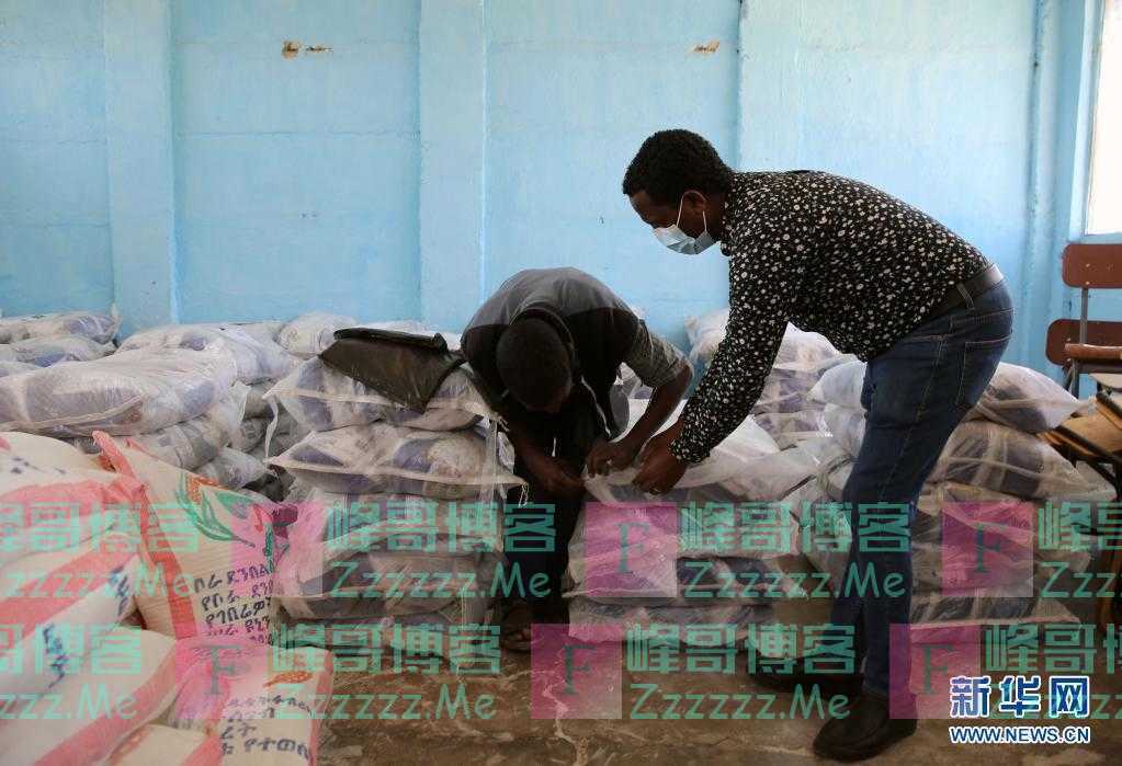 6月9日,工作人员在埃塞俄比亚中南部奥罗米亚州的杜凯姆市给当地学生发放“粮食包”。新华社记者 汪平 摄