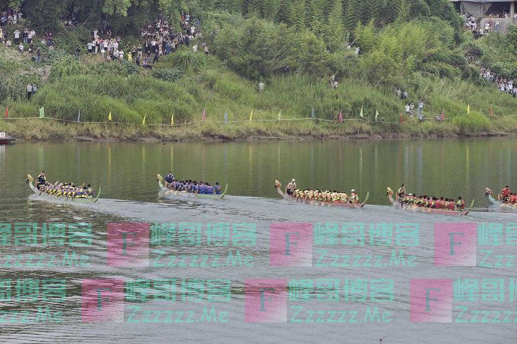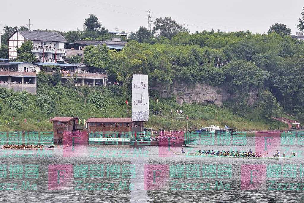 6月12日,万人齐聚中国四大古城的重庆市铜梁区安居古城观赏龙舟赛民俗活动。图片来源:杨康忠/视觉中国