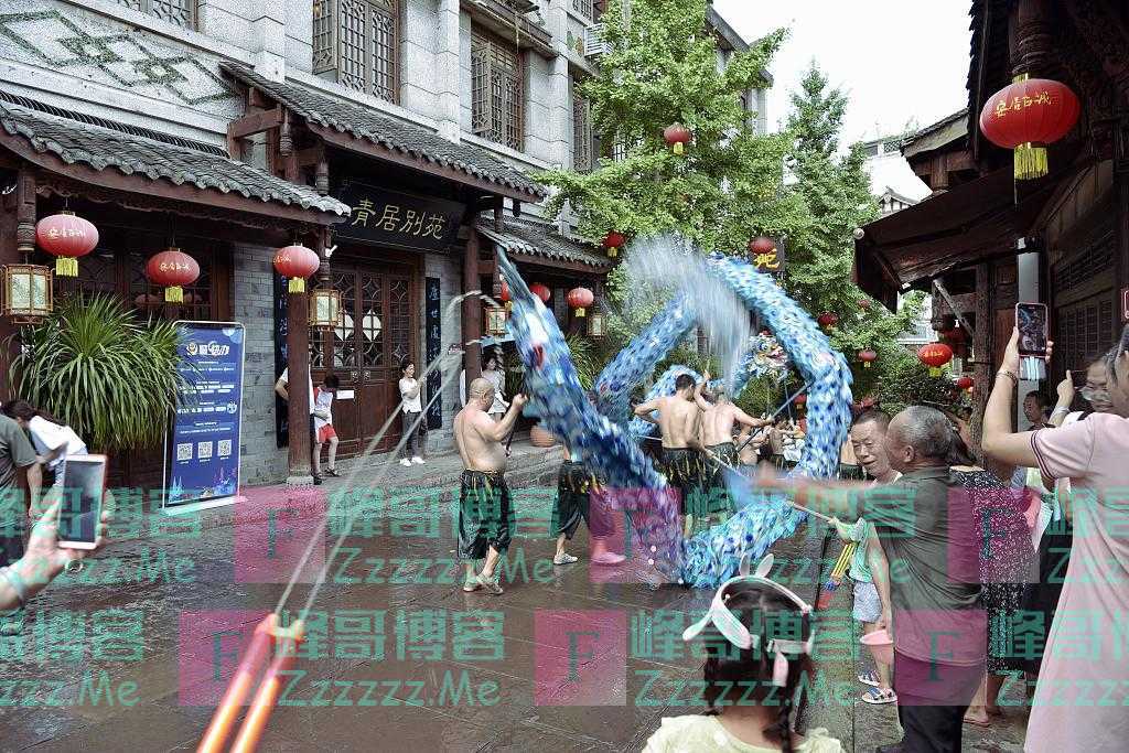 6月12日,重庆市铜梁区安居古城“龙舟会”活动的传统民俗舞水龙,让市民和游客乐在其中。 图片来源:杨康忠/视觉中国