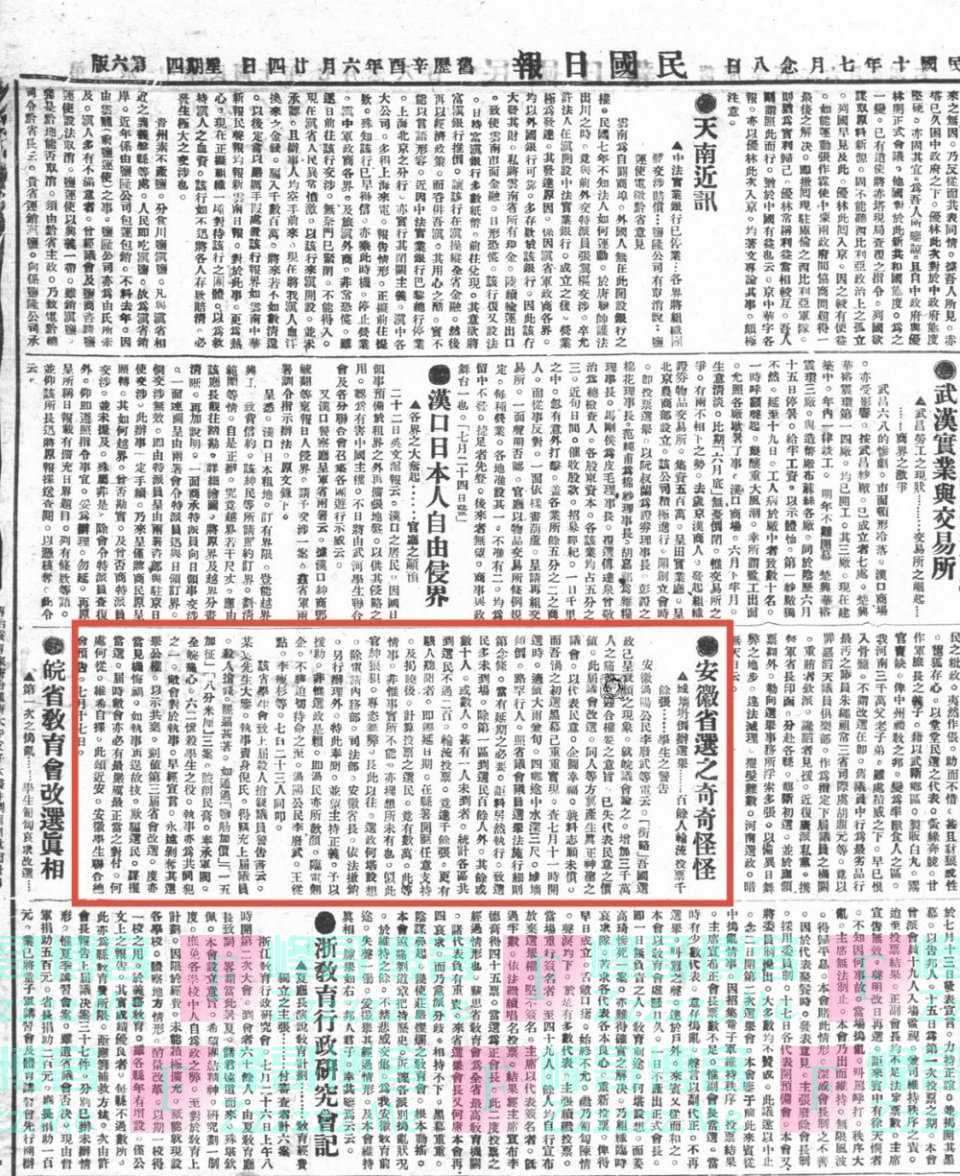 再看7月28日的《民国日报》,一则《安徽省选之奇奇怪怪》的新闻,直指资产阶级政府“城墙坍倒办选举”“百余人轮流投票千余张”的虚伪行径。作者直言:“长此以往,选政何堪设想?”