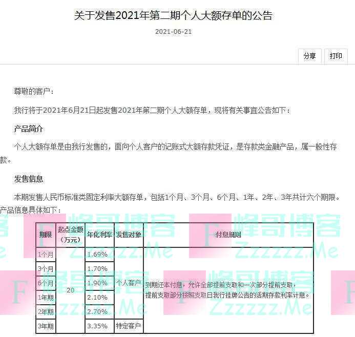 6月21日,中国银行发布关于发售2021年第二期个人大额存单的公告。