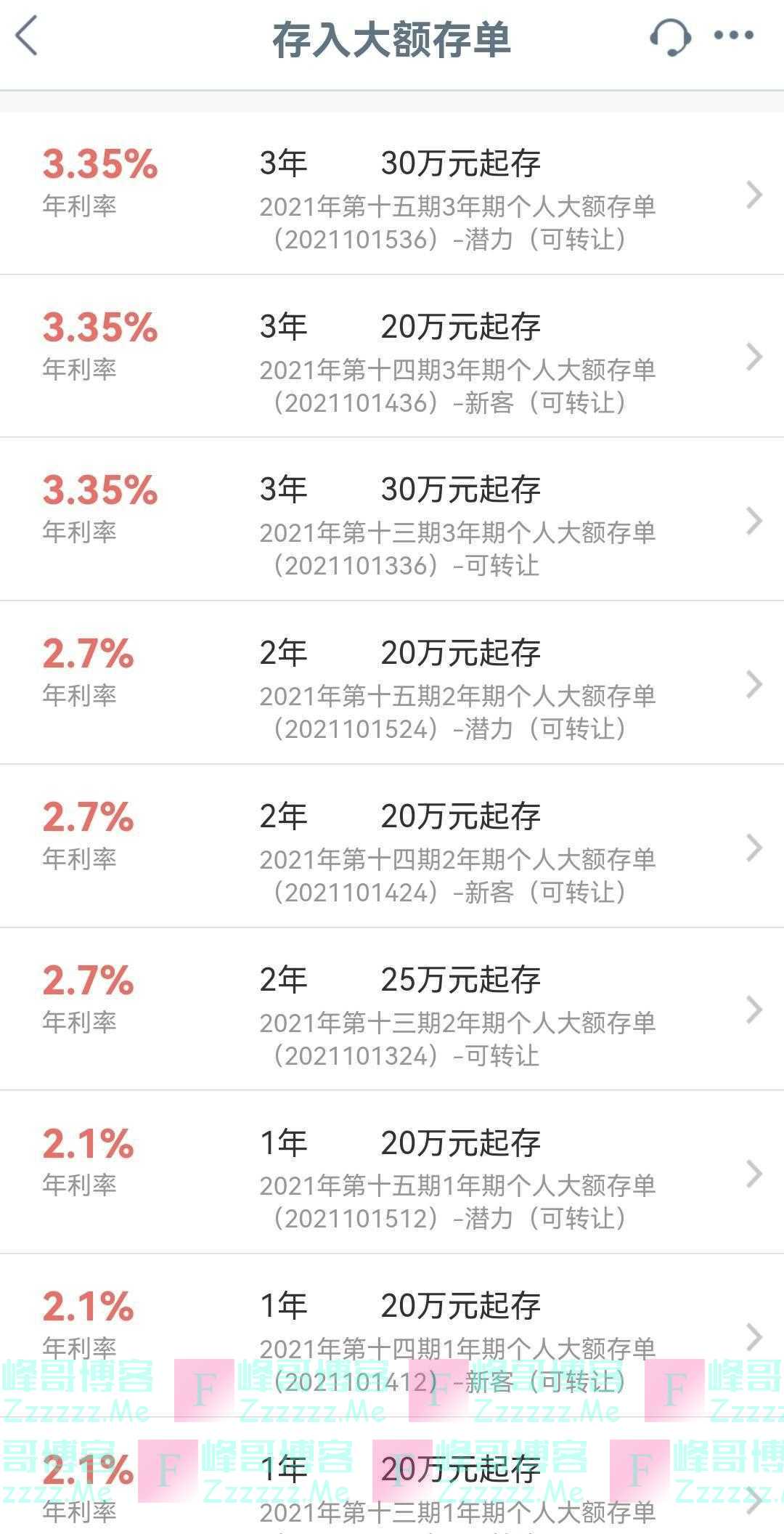 记者21日登陆工商银行手机APP发现,其3年期大额存单利率3.35%,2年期大额存单利率为2.7%,一年期为2.1%,之前高于此利率的产品均已消失。
