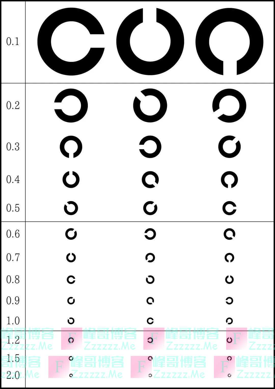 平时我们测视力的时候,基本用的都是这种画满了各种方向E的表。