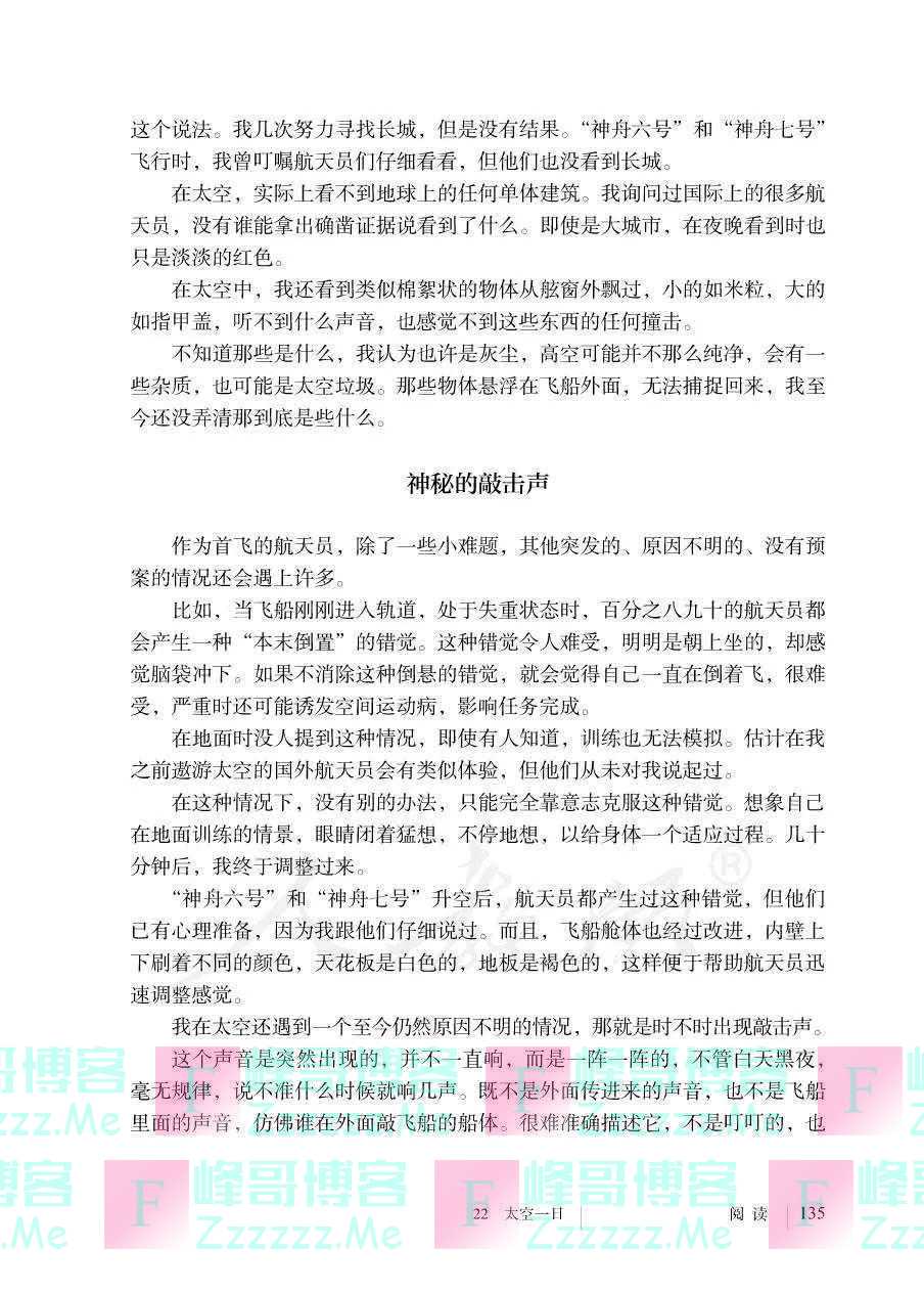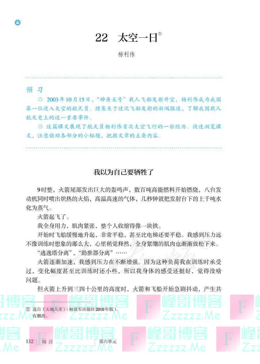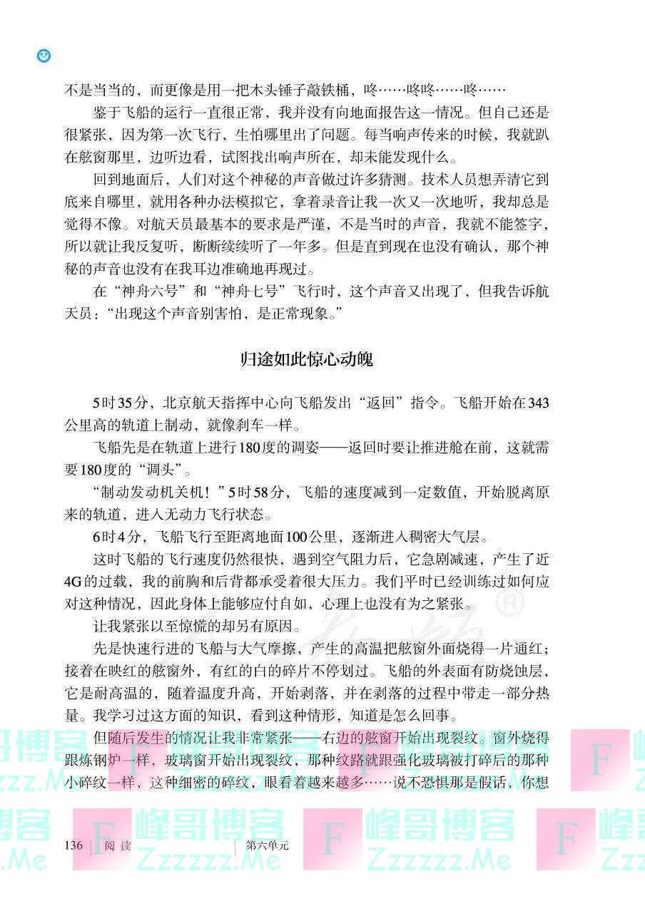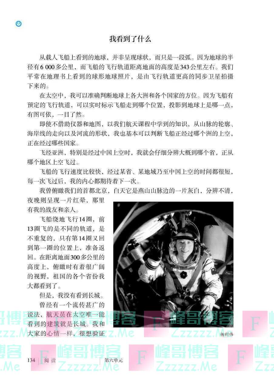 近日有网友发现,人教版七年级下册语文书中有篇课文名为《太空一日》,作者正是杨利伟。