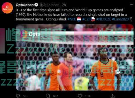 欧洲杯于北京时间27日凌晨0时迎来一场1/8决赛较量。在匈牙利布达佩斯普斯卡什竞技场,荷兰与捷克先发登场,最终捷克2:0击败10人荷兰,成功晋级八强赛迎战丹麦的同时,橙衣军团也就此止步本届欧洲杯十六强。而经此一役,荷兰队也创下一项尴尬纪录:自1980年以来,这是该队首次在世界大赛比赛中全场零射正。