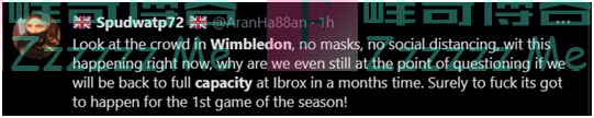 对此,似乎有现场球迷进行了解答,但同时也对温网防疫举措难掩失望。↓