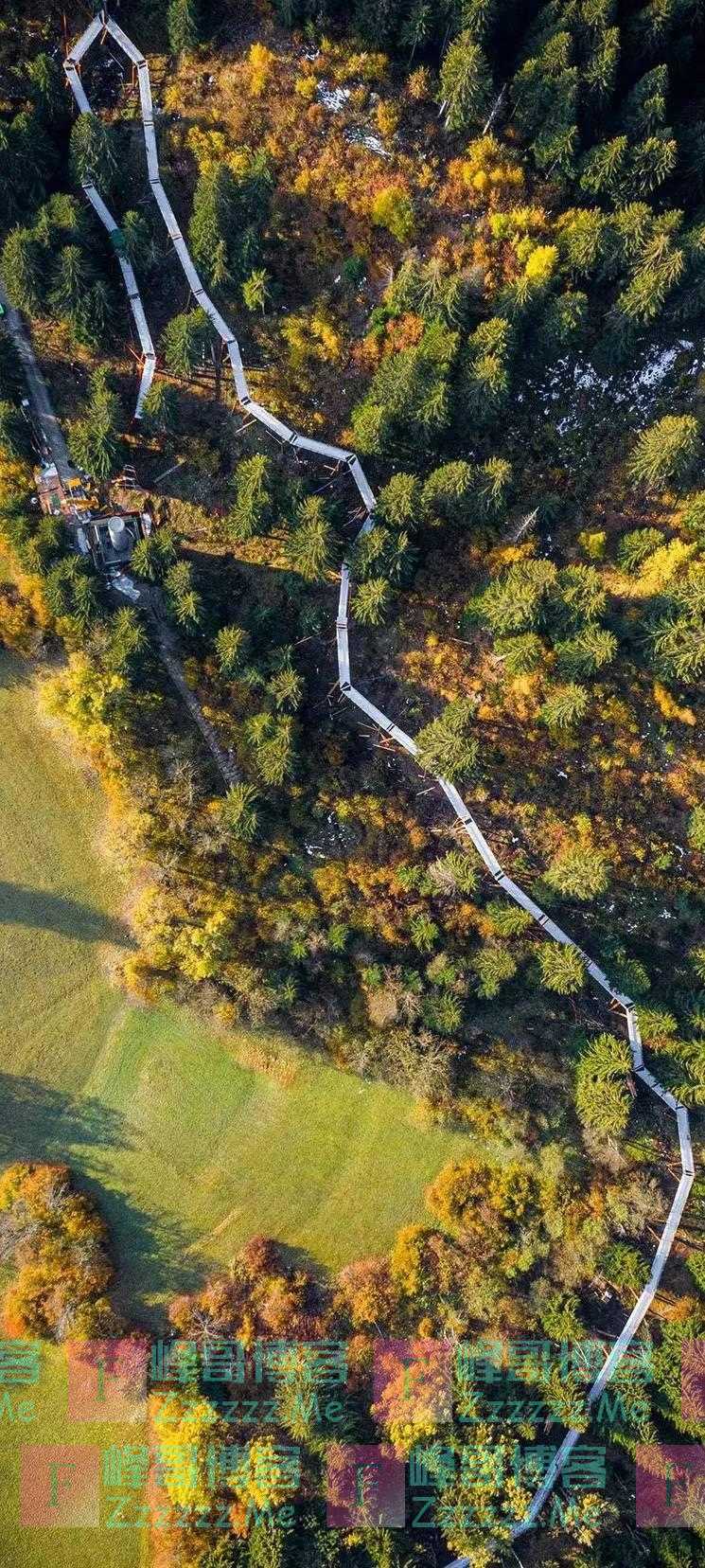 树顶步道全长1.5公里,坐落在28米高的树冠上,是世界上最长的树顶人行步道。步道与树木同高,游客可以获得与众不同的体验。行走在树顶步道上,不仅可以欣赏阿尔卑斯山的远景,还能够近距离观察不同类型的针叶林和冷杉球果。树顶步道还为孩子提供教育体验,可以与各种野生动植物互动,沿途还有为儿童量身定制的信息板,在游玩的过程中,学习丰富有趣的自然知识。有趣的是,这里设有长73米的滑梯,游客可以通过滑梯,从树木上方滑到地面。滑梯上有四个平台,每个座位都隔开一定距离,舒适又安全。此外,为了照顾残障人士,整个步道平坦开阔,两端都有升降机,方便轮椅使用者。冬季,步道还会使用电动吹雪机清除积雪。
