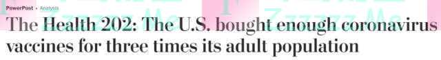 据《华盛顿邮报》此前估算,美国政府囤积的疫苗总量足够7.5亿人接种,这一数字是美国成年人总数的三倍。
