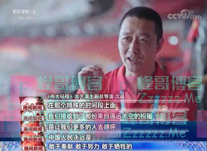 《伟大征程》文艺演出副总导演 沈晨: 在那个特殊的时间段上面,我们接收到了来自遥远太空的祝福,是让更多的人去感怀,中国人民永远是敢于奉献、敢于努力、敢于牺牲的。