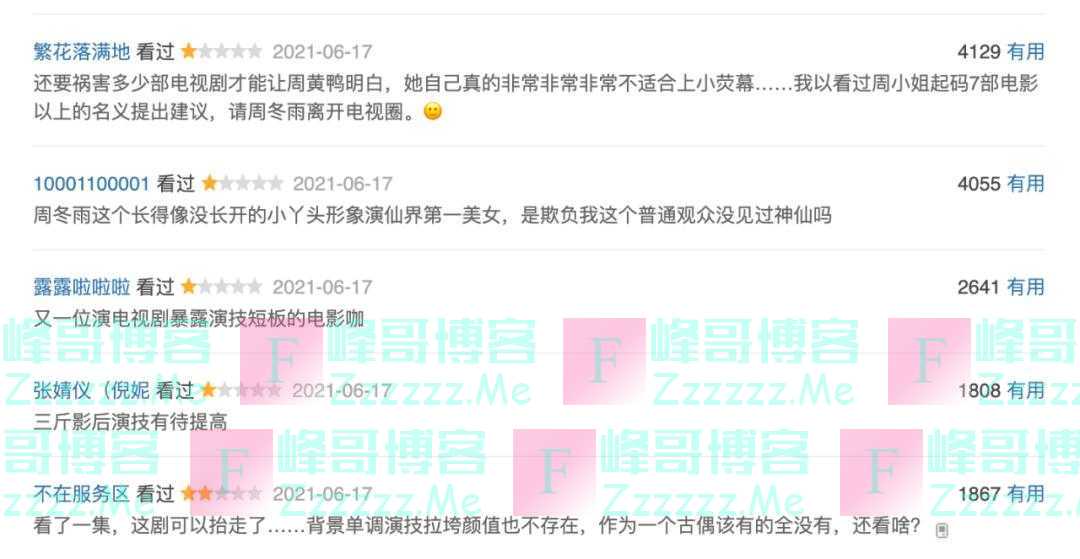 从这些评价中不难窥见,在不少观众心中,这部剧的最大败笔,恰恰是主演周冬雨本人。