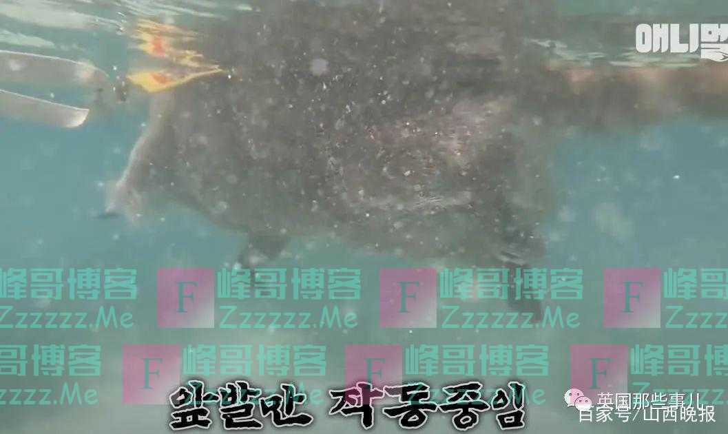 原来它在水里也会偷懒,只用两只前爪刨水,胖胖的后腿还是一动不动的……
