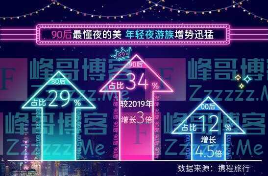 年轻夜游族的增势非常迅猛,从携程今年上半年的夜间票量订单与2019年上半年比较来看,90后夜游族增长近3倍,00后增长4.5倍。
