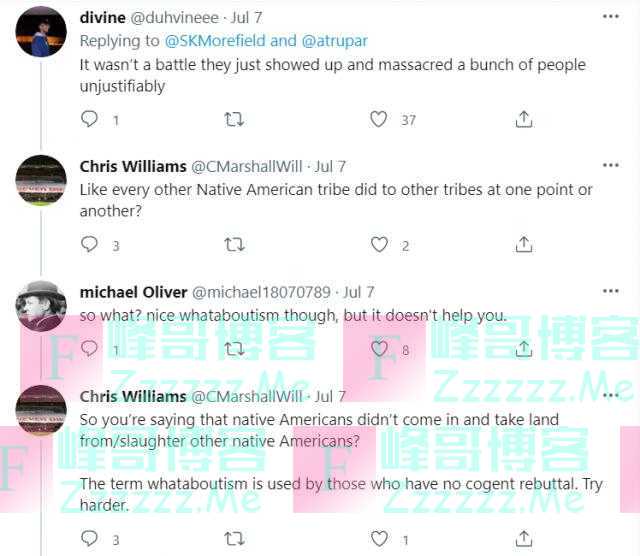 事实上,沃特斯在美国也确实有他的“市场”。比如在揭露沃特斯“暴露”的帖子下第一条评论反问:“他说错啥了吗?”、“原住民本来就自相残杀”,以此为白人的屠杀暴行辩护。
