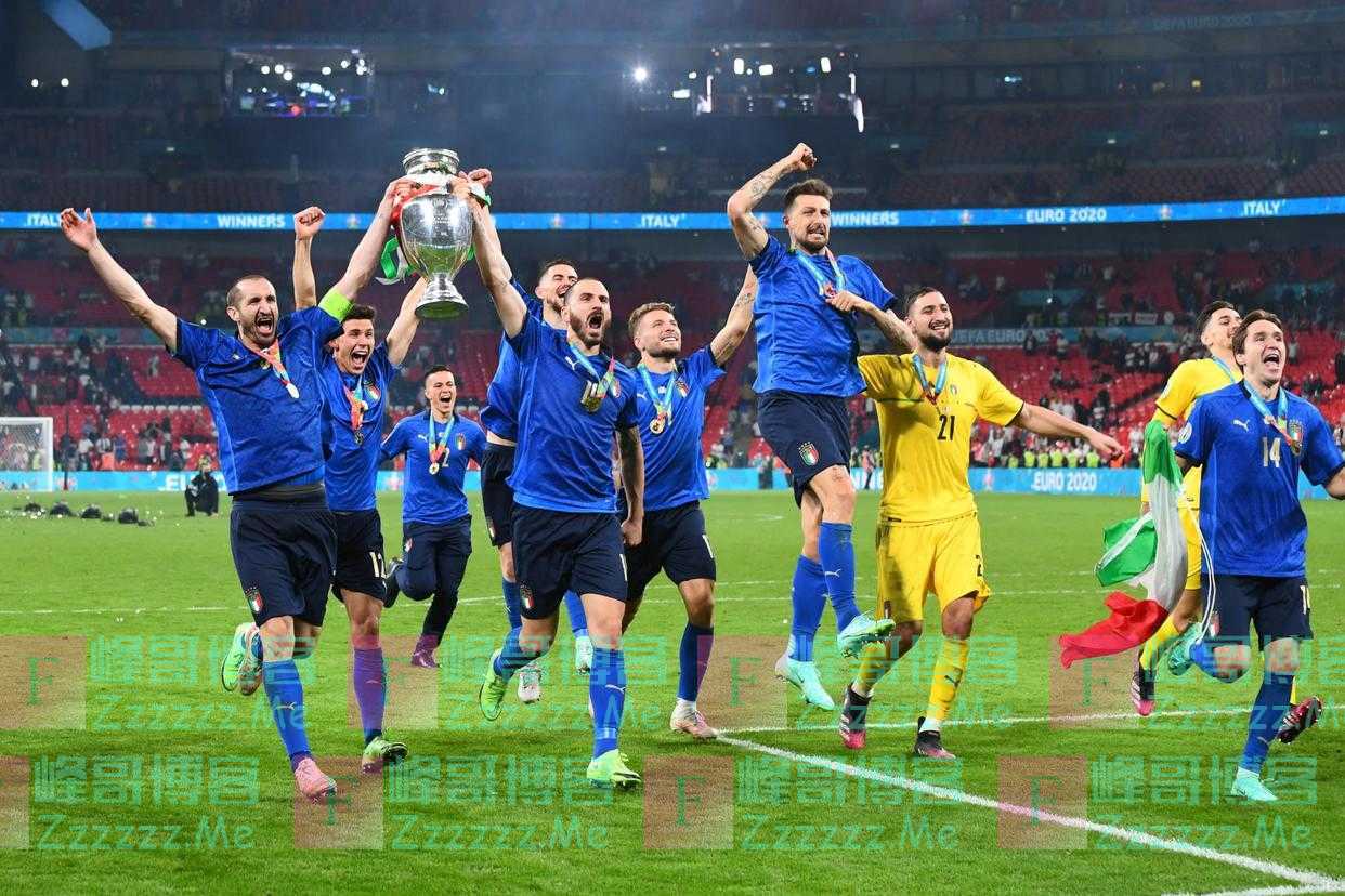 击败英格兰夺冠后,意大利各赛事34场不败,距巴西和西班牙的国家队连续不败纪录仅差1场。