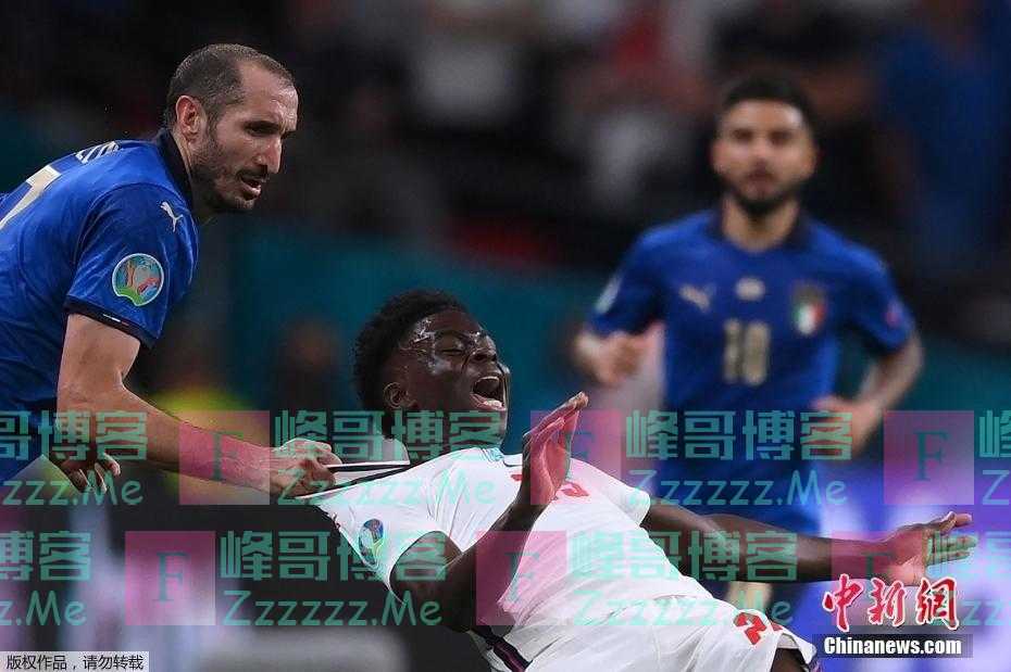 7月12日,2020欧洲杯决赛上,意大利球员基耶利尼在杯赛中做出关键防守。