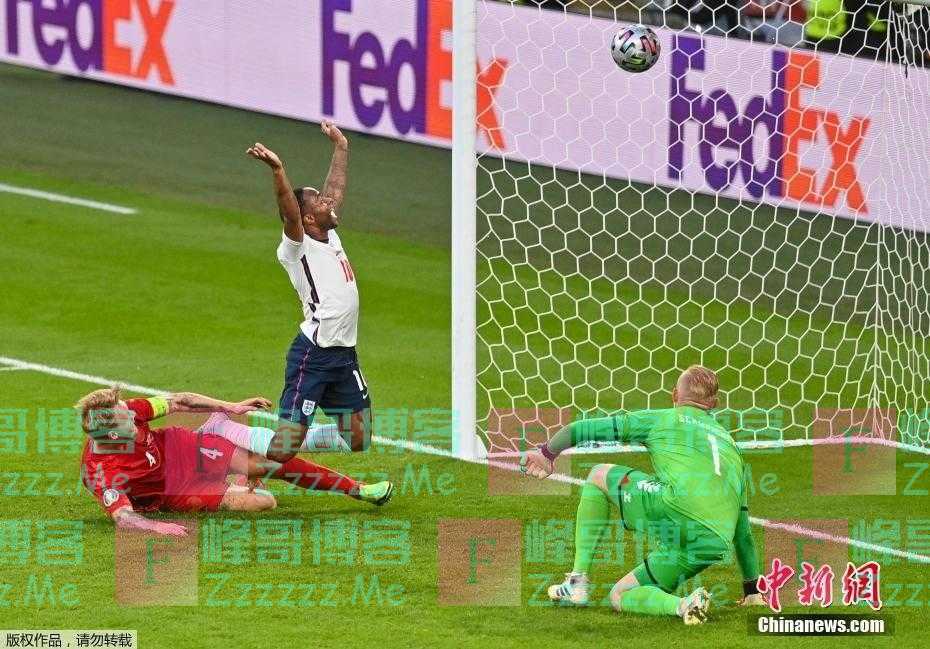历时一个月的欧洲杯除了那些让人记忆犹深的时刻,还有各队锋线上演快乐足球、门将飞身救险、球员激情庆祝分享胜利喜悦等诸多精彩瞬间。图为7月8日,在英格兰对阵丹麦的欧洲杯半决赛中,斯特林目睹即将入网的乌龙球,提前举起双手庆祝。